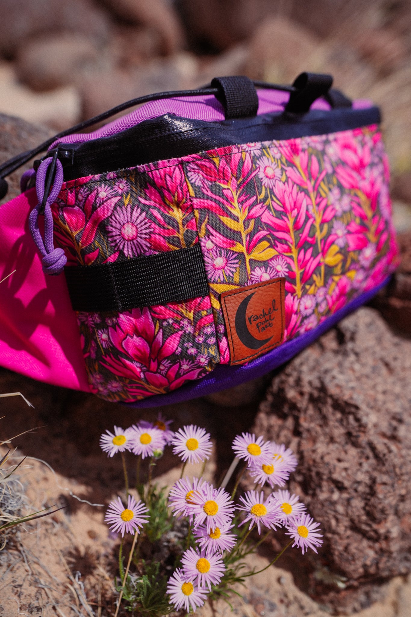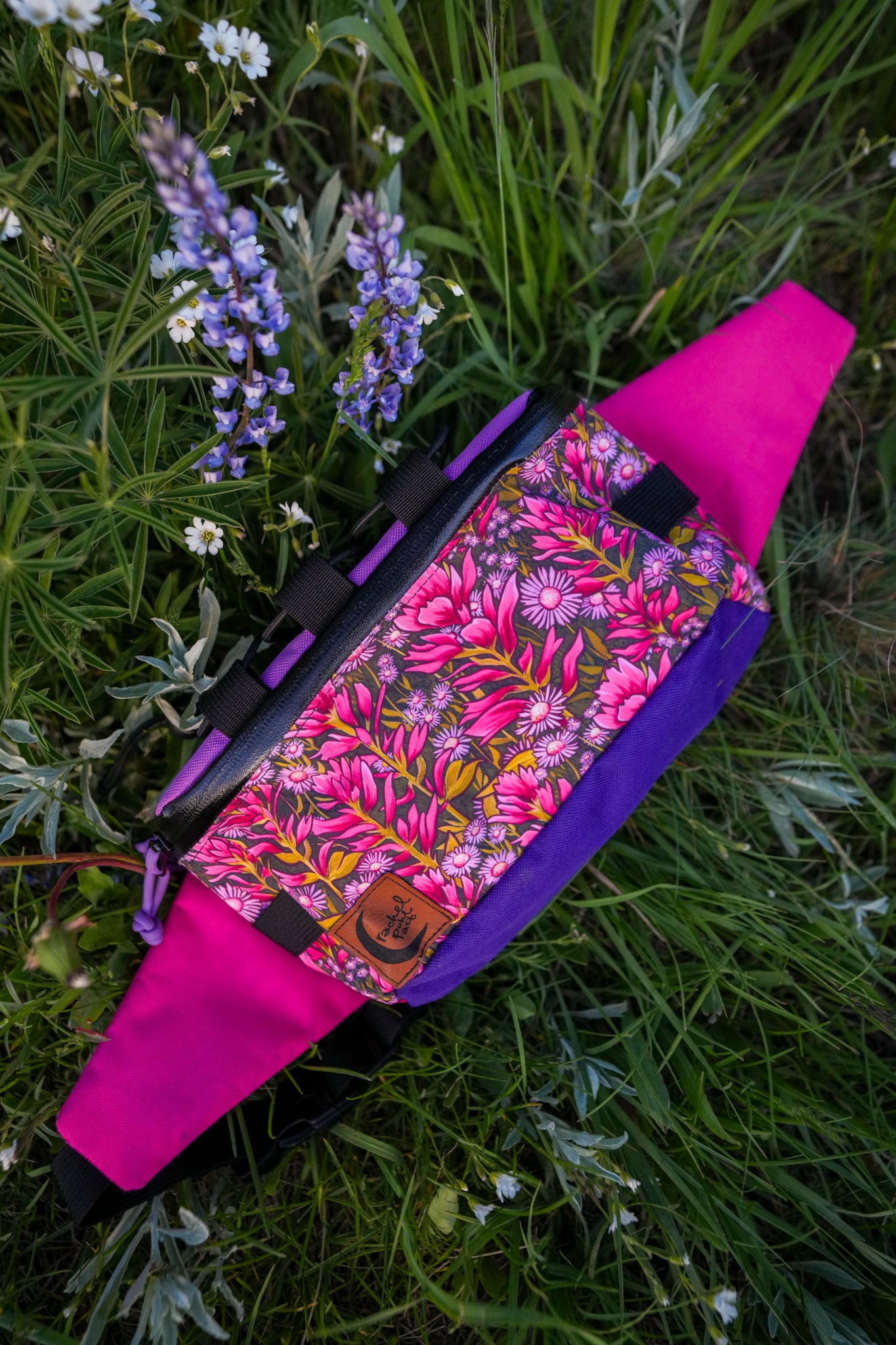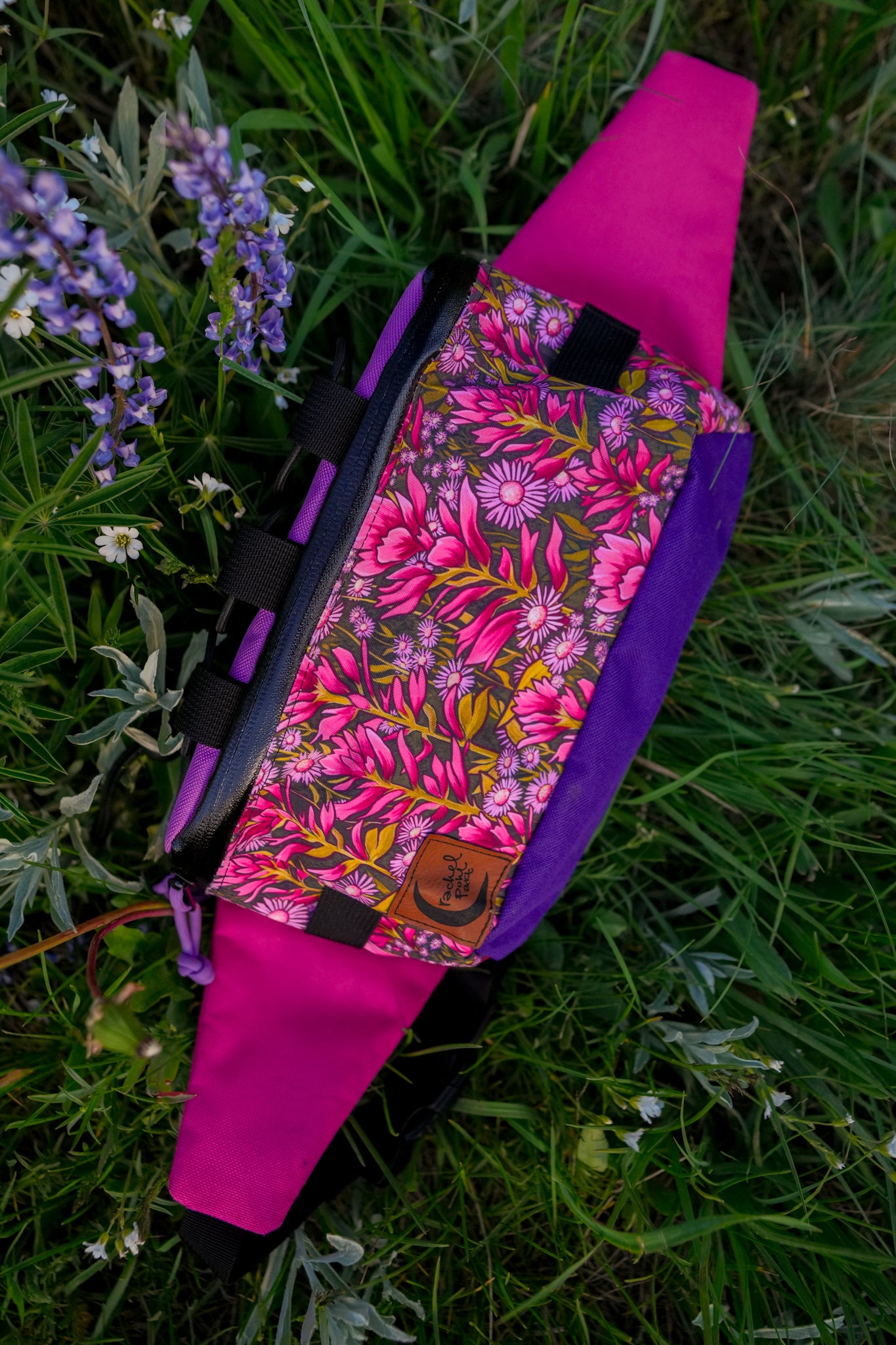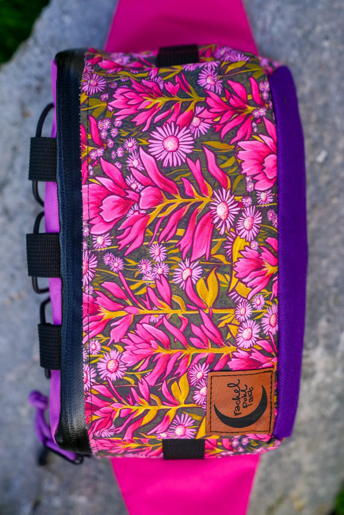 These hip packs are gorgeously crafted by our friend Julianne of Wild Brush in Colorado, with rugged eco canvas printed fabric. They have have a black waterproof zipper, and are about as creative and colorful as you can imagine!