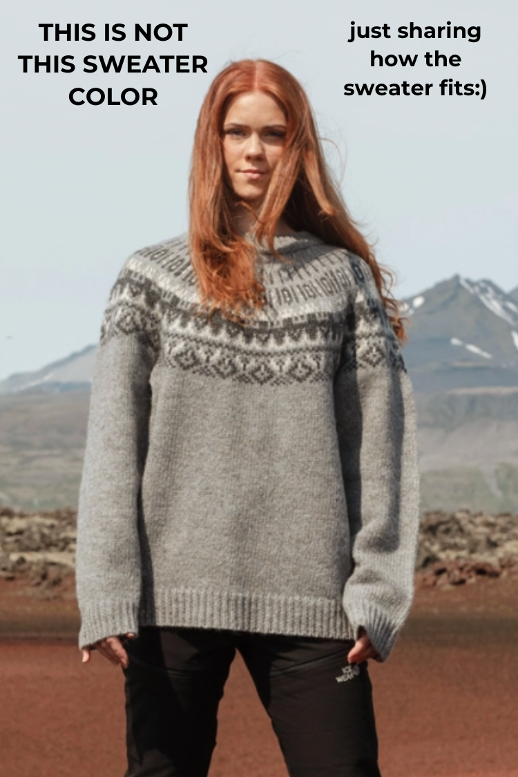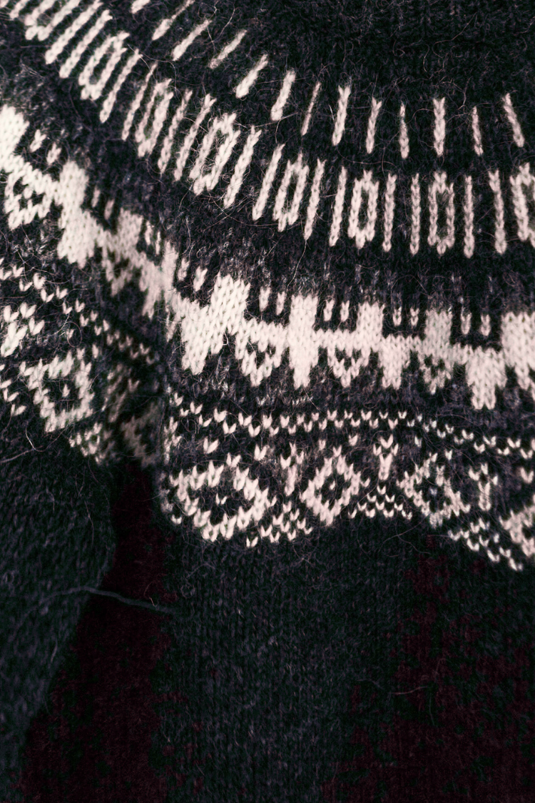 This machine knit wool sweater features a classic Icelandic design and traditional pattern. Made from Icelandic wool, by the brand Icewear.
