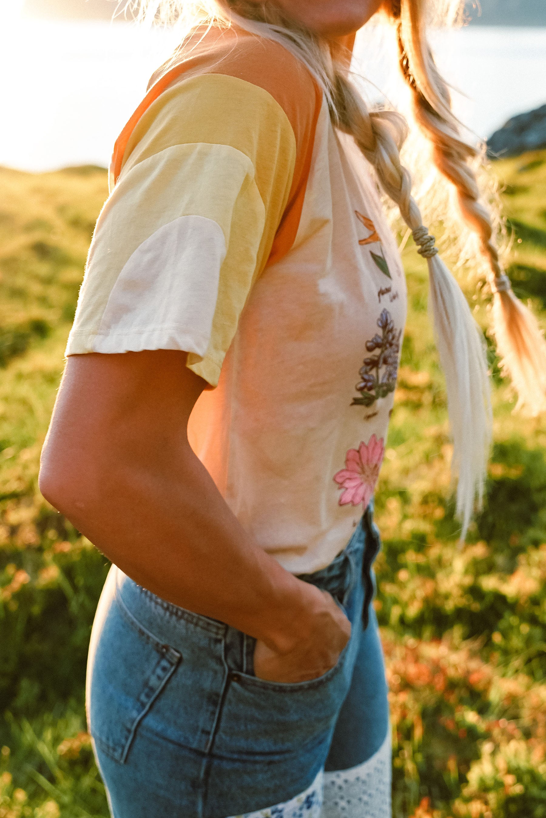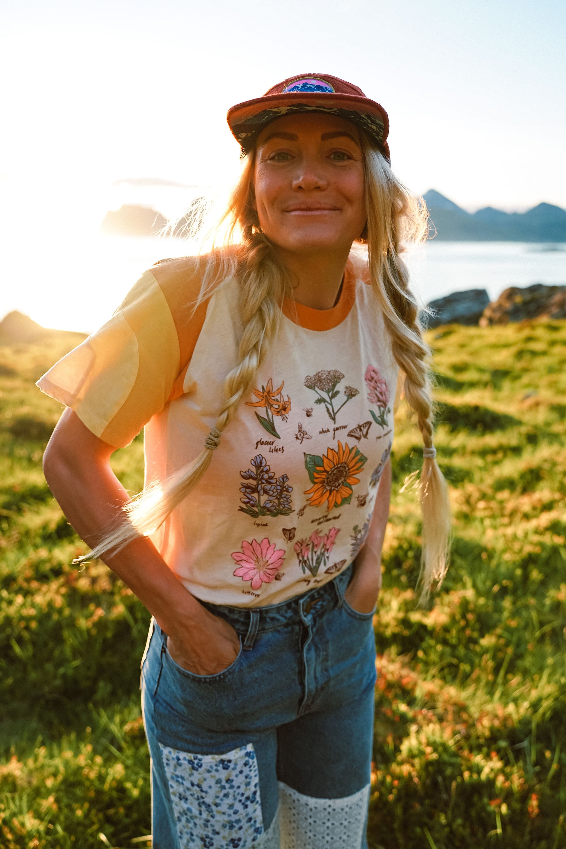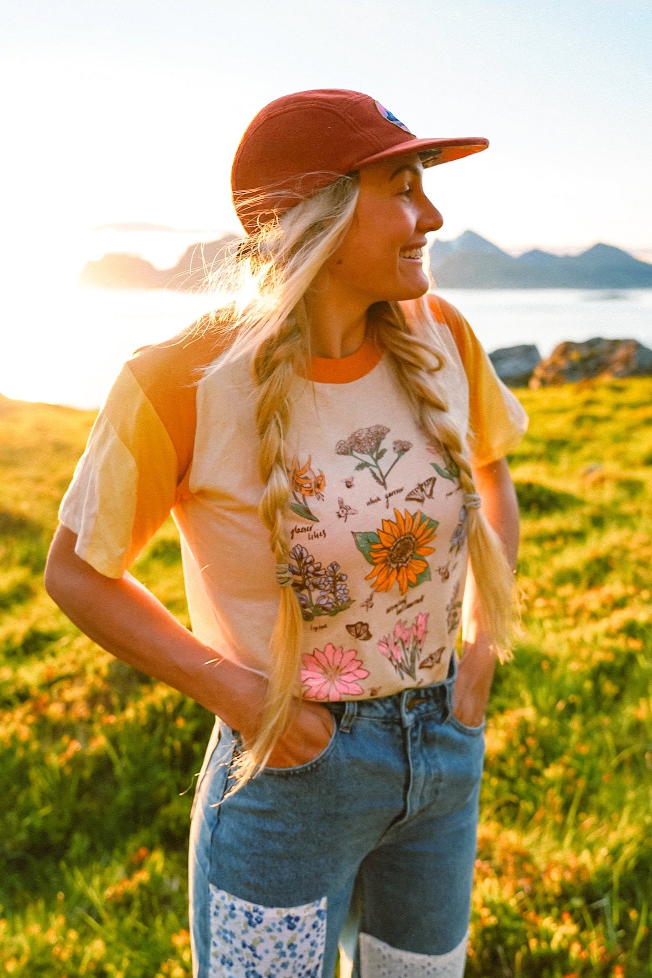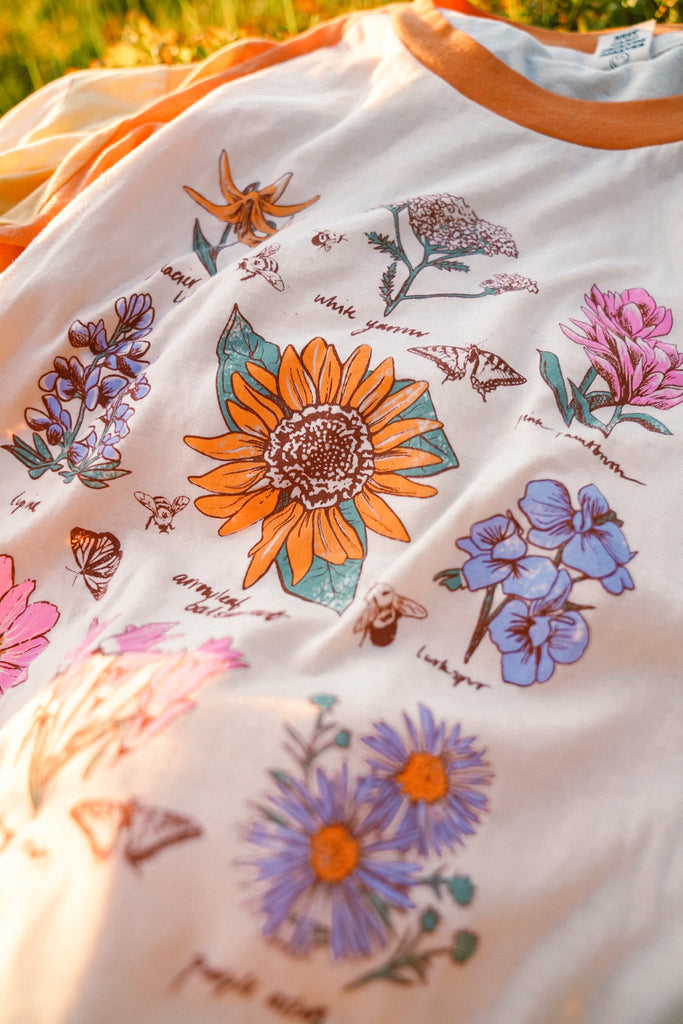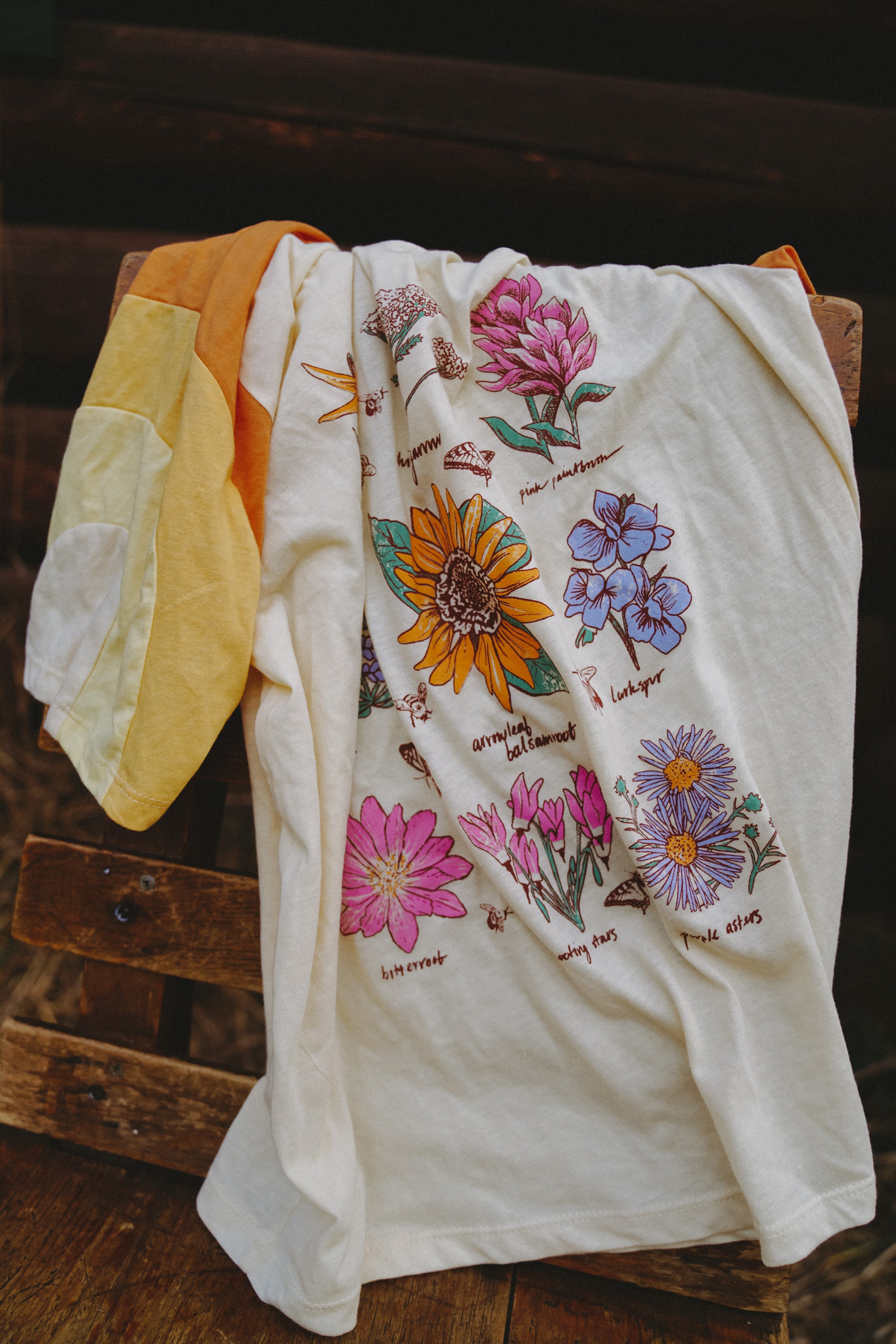 This gorgeous tee is truly special. It combines an original drawing of wildflowers of the west by Rachel, screen printed on a custom designed, CAMP Collection “Lava Lamp” tee, made in San Francisco. This shirt is all about long-lasting quality, softness and detailing of your favorite vintage shirt.