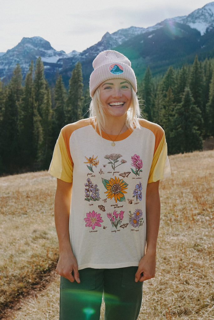 Meticulously crafted fit and graded for consistency with minimal shrinkage, our shirts get better with every wash. From our iconic locker loop to these CAMP classic “lava lamp” sleeves in shades of yellow and gold, you'll keep reaching for your Wildflowers CAMP tee over and over.